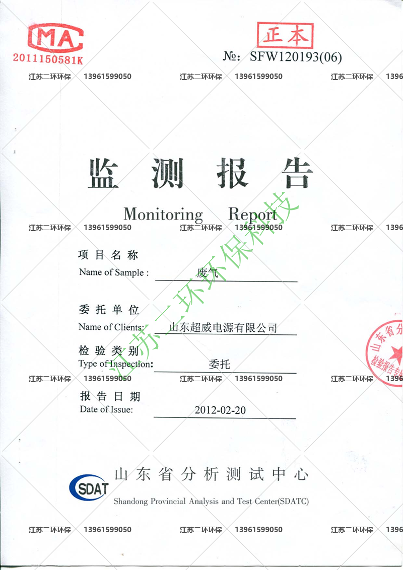 2、环保验收以业主当地环保监测部门或法定的第三方检测机构出具的书面监测报告为准。
