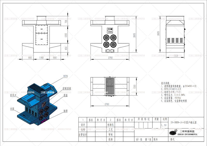 4、工作台自带底吸风与侧吸风吸口,并装有照明设备。