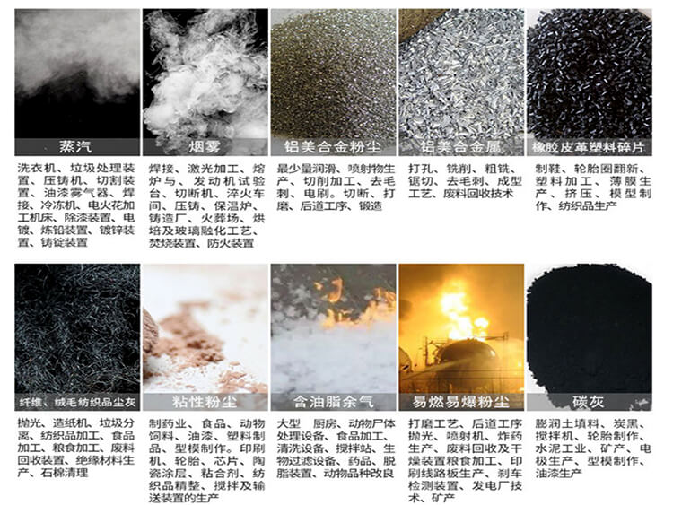 铝镁金属材料打磨工序、易燃易爆的的工序、具有黏结性的潮湿烟尘气体。