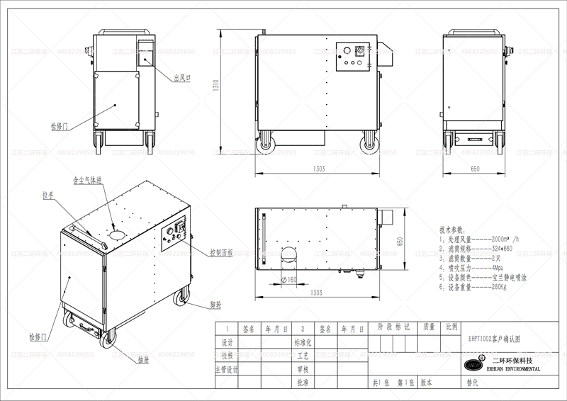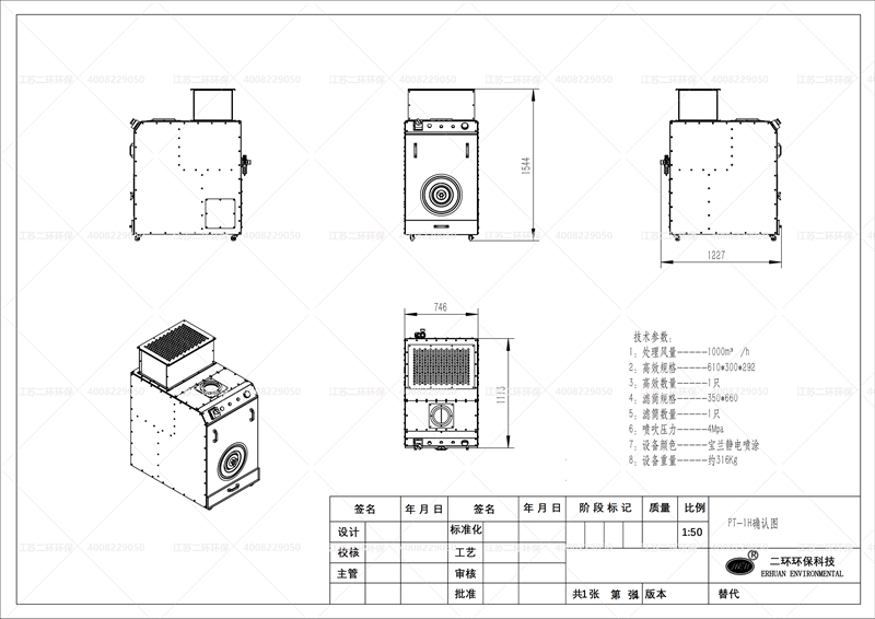 3、PT-1H型移动焊烟单机图纸(下图)注意:滤筒+活性炭=2级过滤喔!