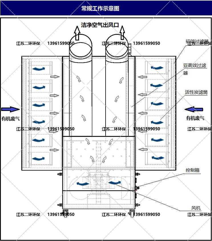 7、活性炭筒采用的是颗粒活性炭,具有较大的吸附表比面积,有效祛除空气中的异味等VOCS有机废气