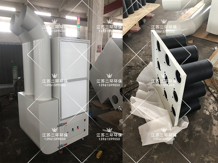 9、目前产品分为两款,一款是不带活性炭过滤器,型号是KF1001型,过滤烟尘为主,例如电焊烟尘。